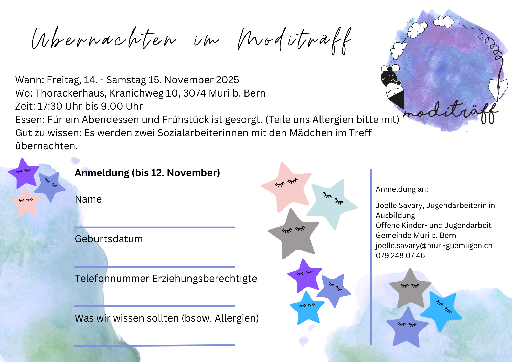 Wir treffen uns am Freitag, 14. November 2025, um 17:30 im Moditräff, kochen dann gemeinsam, spielen, plaudern und bleiben so lange wie möglich wach. 😉