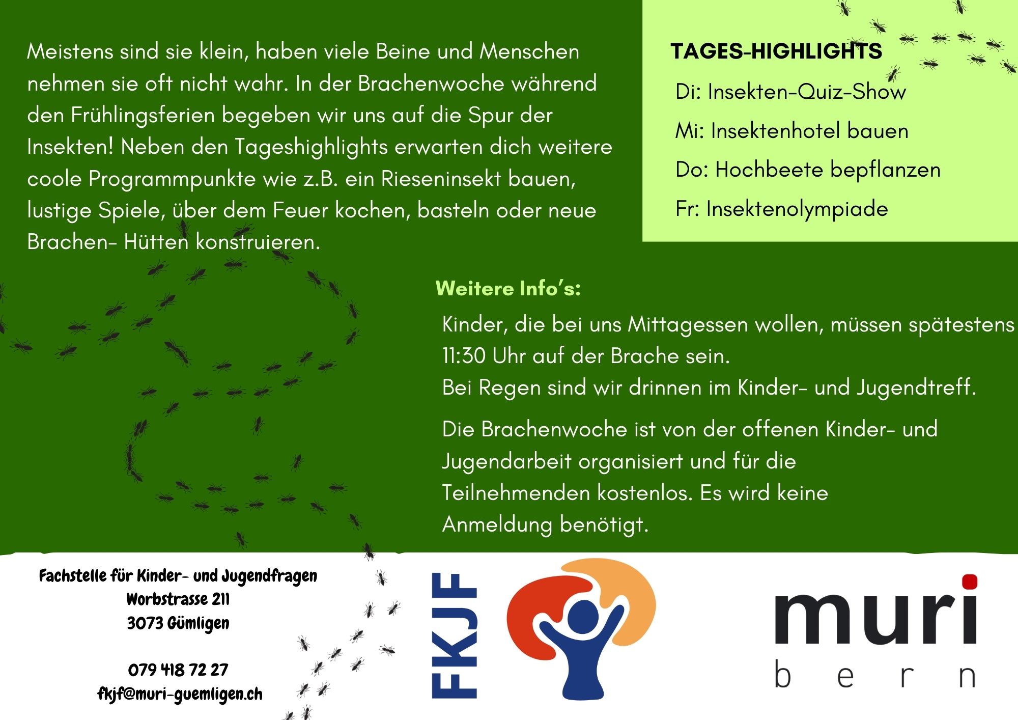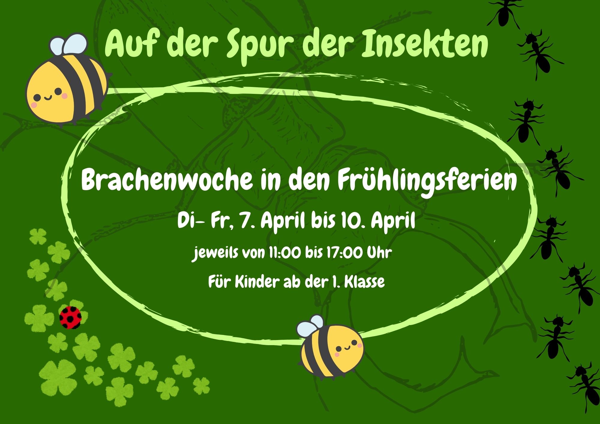 In den Frühlingsferien lädt die OKJA Kinder ab der 1. Klasse zu einem vielversprechenden Ferienangebot ein. Die bewährte „Brachenwoche“ findet vom 7. bis 10. April statt, in welcher  sich vieles um die spannende Welt der Insekten dreht.